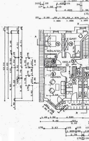 - Wohnung links 60qm (zzgl. Maisonette-Zimmer im Spitzboden von 32qm)