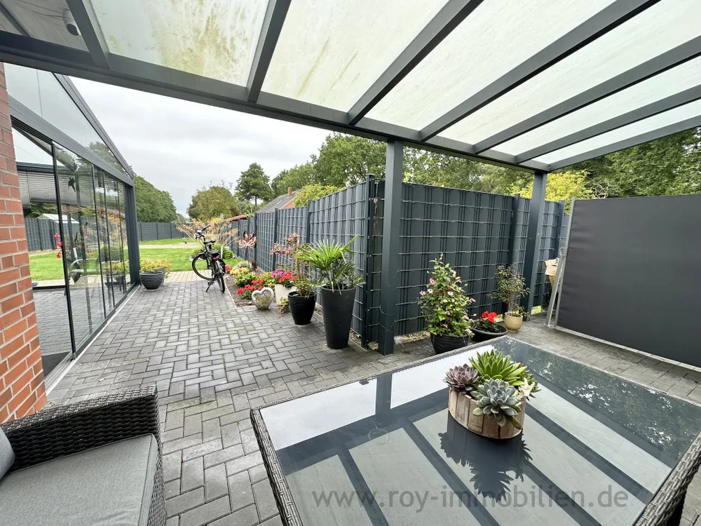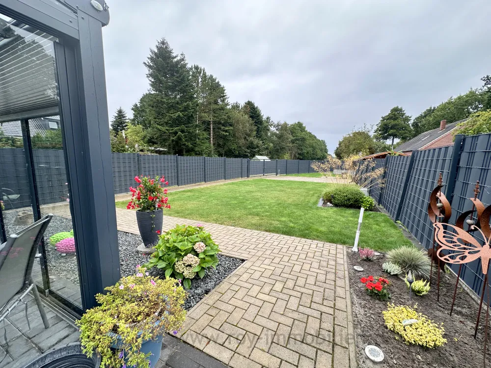 Ebenerdig und barrierefrei bewohnen Sie hier einen schicken Walmdach-Bungalow in ruhiger Lage in zweiter Reihe. Die Fenster sind 3-fach verglast. Die Beheizung erfolgt mit einer Wärmepumpe.
