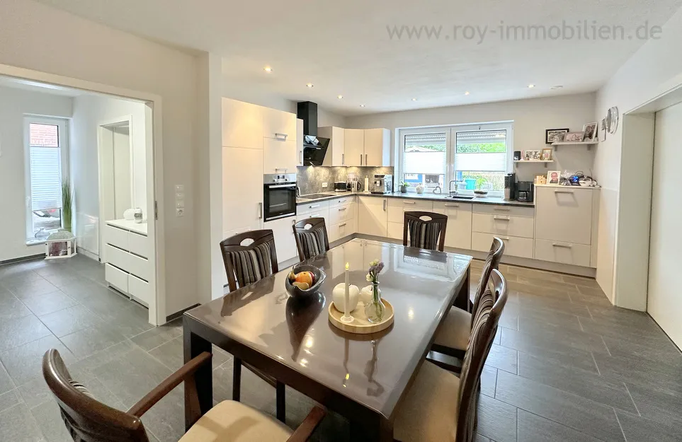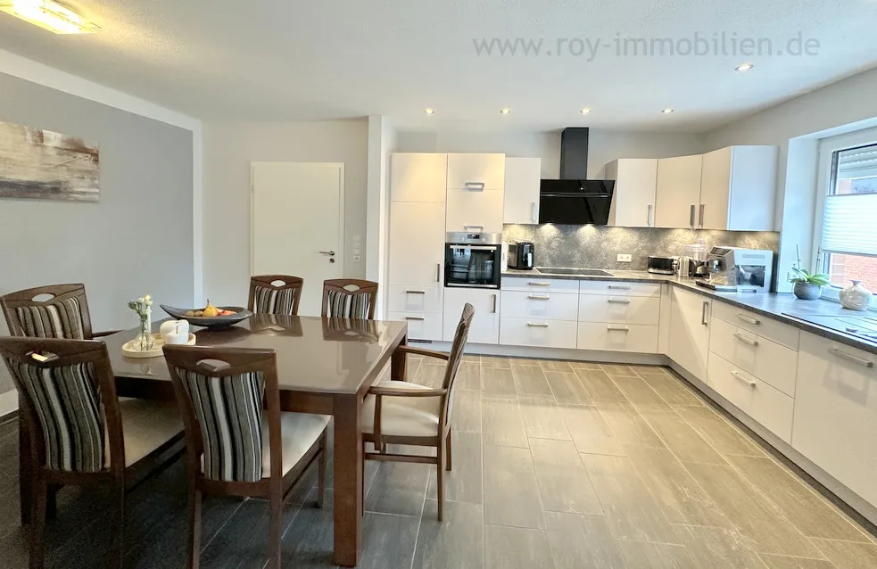 Die Küche ist mit einer top-modernen, hochwertigen Einbauküche ausgestattet und bietet Platz für eine große Essgruppe für gemütliche Kochabende mit Ihren Freunden.