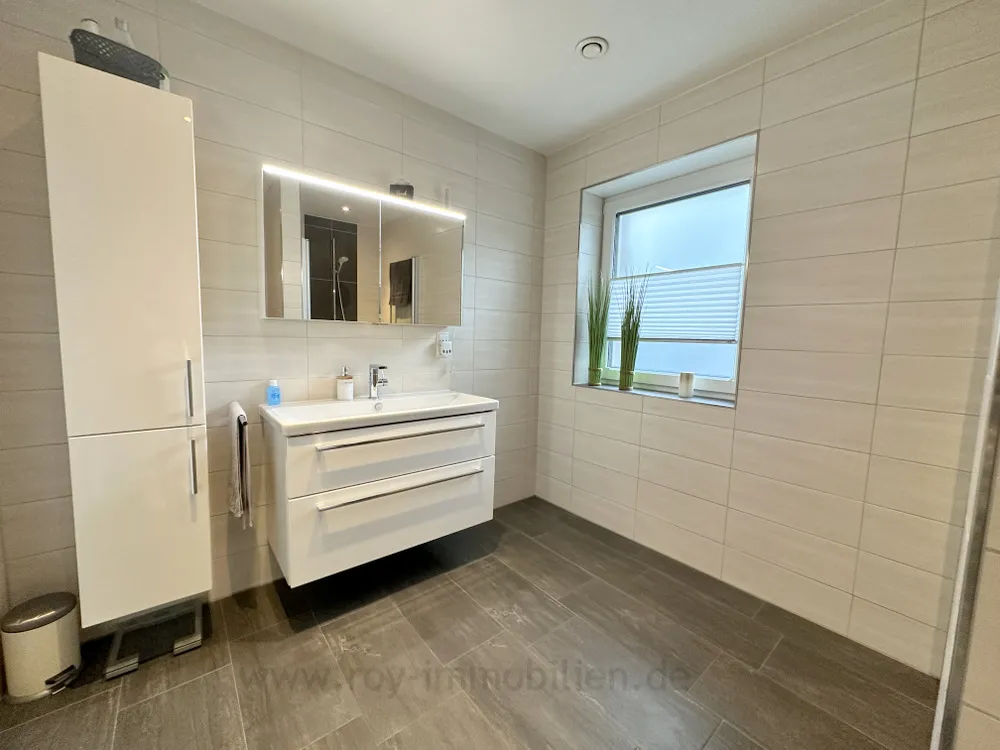 Die beiden Schlafzimmer sind unterschliedlich groß und verfügen über TV-Anschluss. Das Badezimmer ist mit ebenerdiger Dusche, XXL-Waschtisch und WC ausgestattet und bis zur Decke modern gefliest. Das Gäste-WC ist halbhoch gefliest.