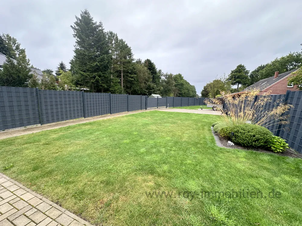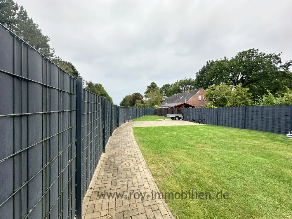 -Das komplette Gartengrundstück hinten ist eingezäunt