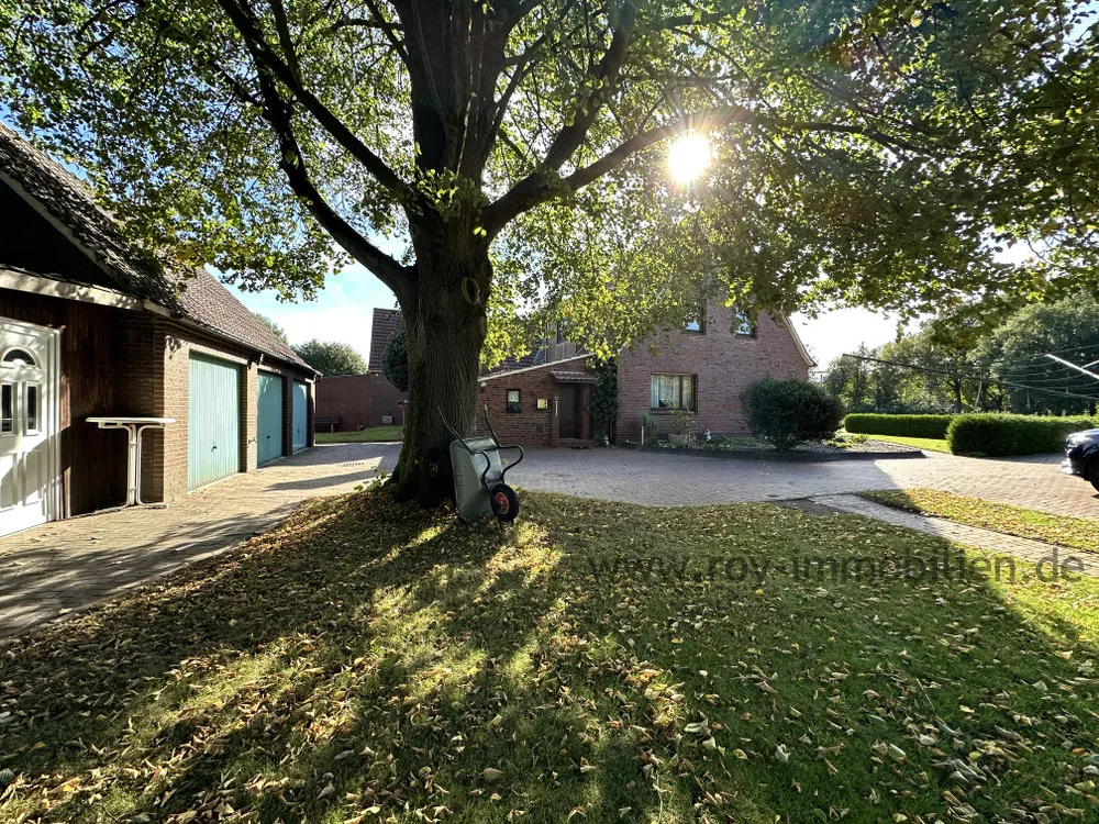 - Das große Gartengrundstück ist mit alten Hecken und Baumbestand umrandet
