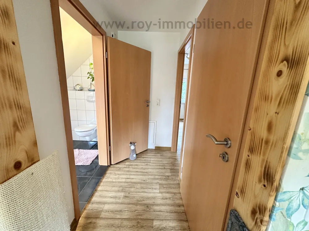 Der kleine Flur führt Sie hier in alle Räume des Dachgeschosses:
