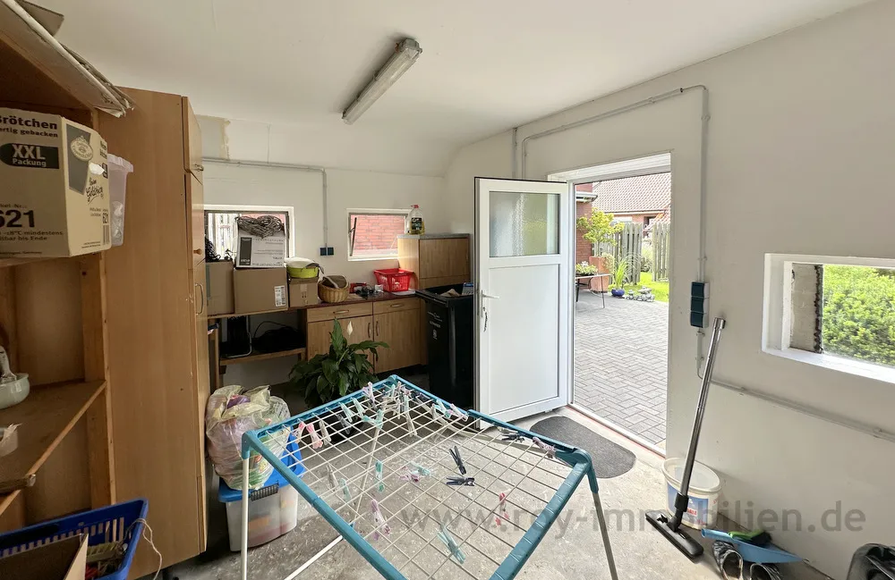 Gleich neben der Küche befindet sich praktischer Weise der Hauswirtschafsraum mit Zugang auf die Terrasse und Innenhof. Der Innenhof mit Terrasse ist sicht- und windgeschützt, ideal für die Grillfeste mit Familie oder Freunden.