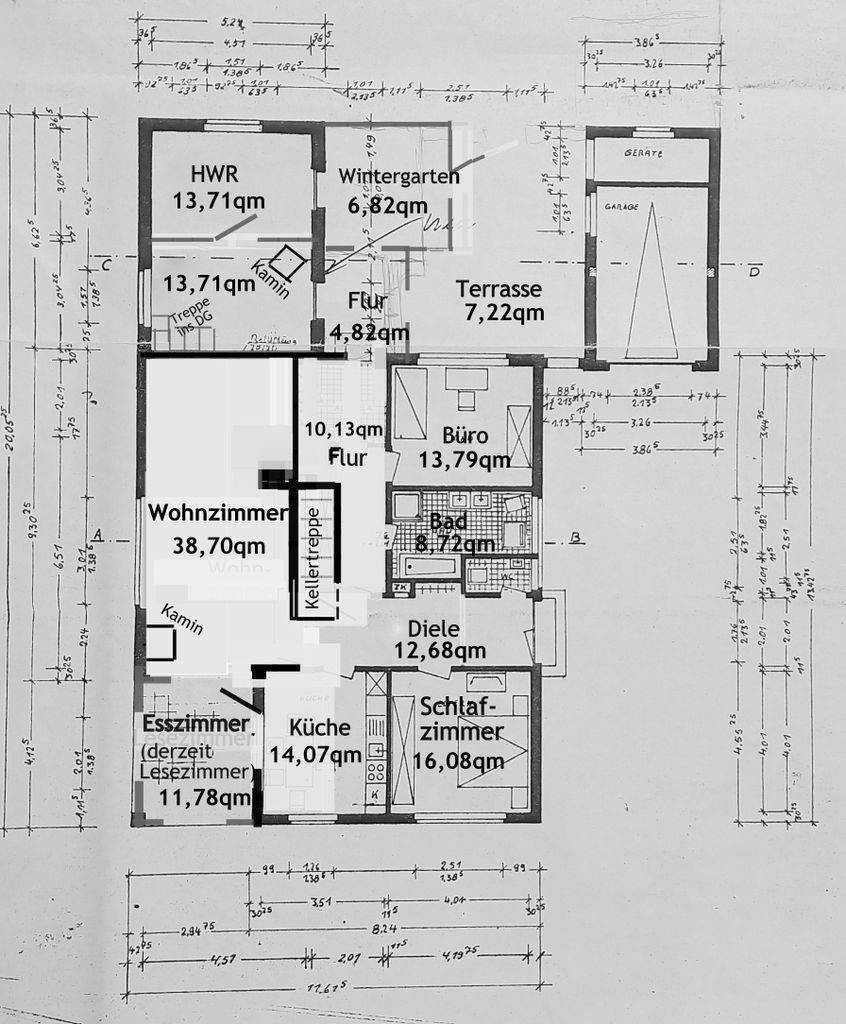 Diese sehr geräumige Immobilie bietet viel Platz für die Familie mit Kindern, wäre aber auch mit wenig Aufwand als Mehrgenerationenhaus nutzbar. Das Dachgeschoss ist bereits ausgebaut, gedämmt und beheizt. Versorgungsrohre für ein weiteres Badezimmer sind im DG schon gelegt.