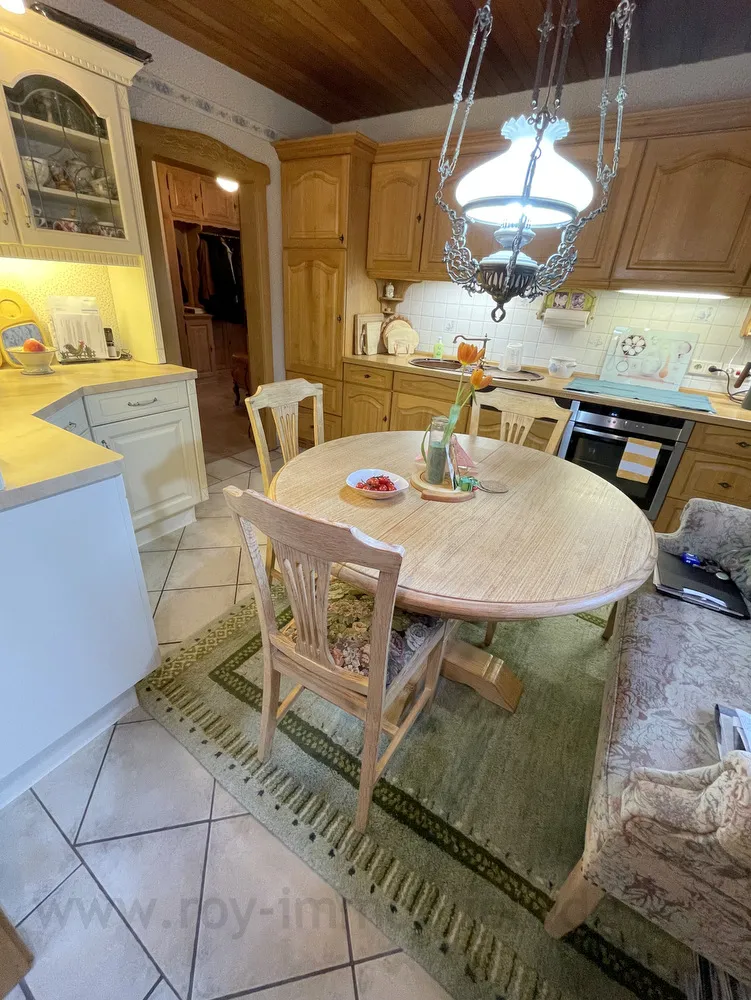 Die Küche ist sowohl von der Diele wie von dem Lesezimmer erreichbar. Sie ist ausgestattet mit einer Einbauküche und bietet Platz für den Familientisch direkt am Fenster mit Blick ins Grün.
